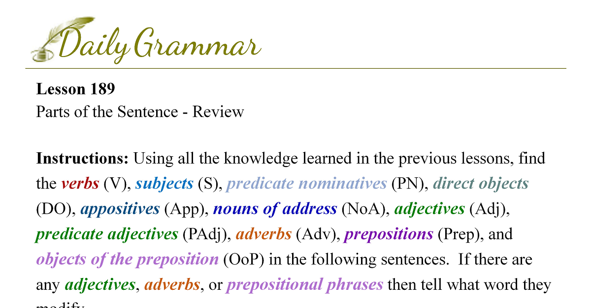 Parts of the Sentence - Review