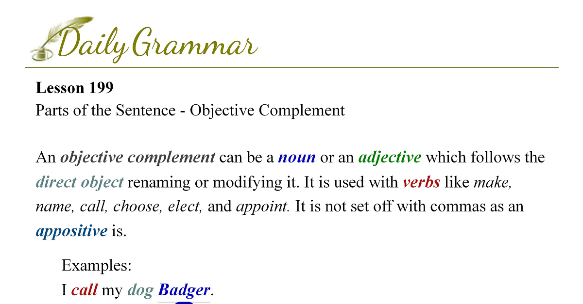Parts of the Sentence - Objective Complement