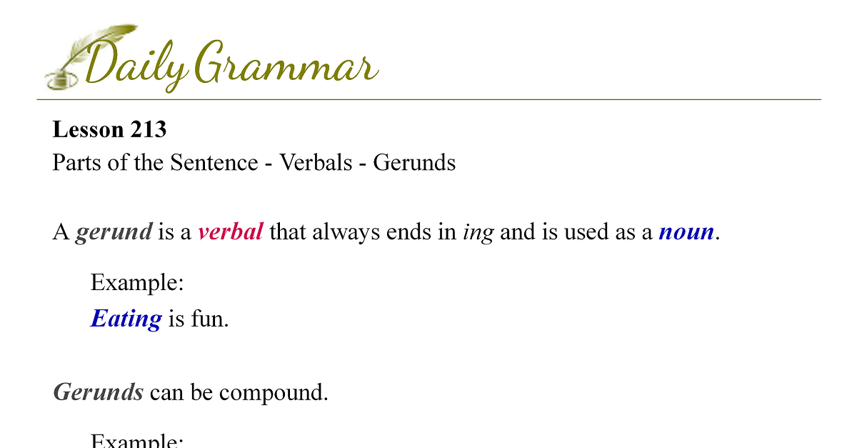 Parts of the Sentence - Verbals - Gerunds