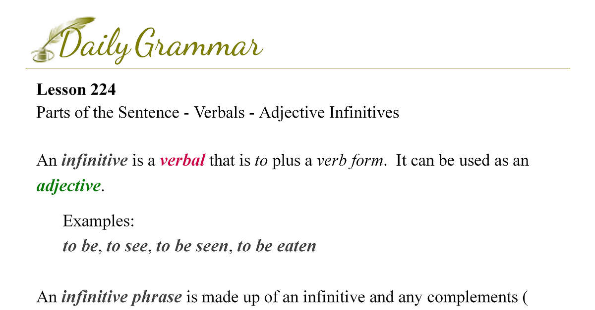 Parts of the Sentence - Verbals - Adjective Infinitives