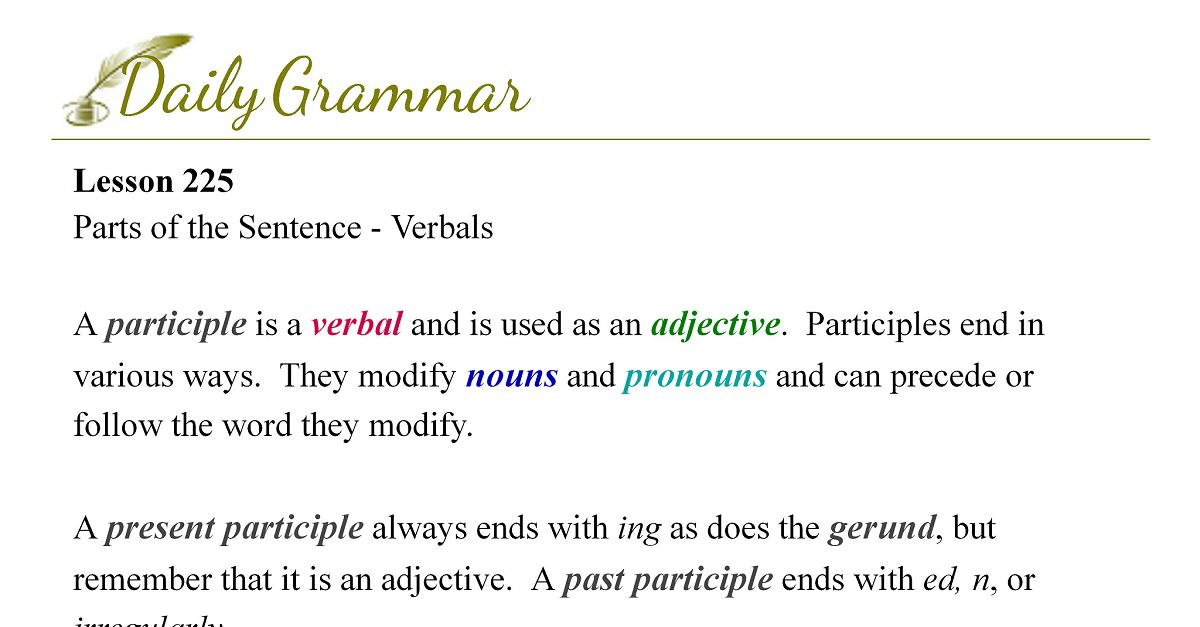 A participle is a verbalA verbal is a verb form used as some other part of speech. Source: Lesson 206 and is used as an