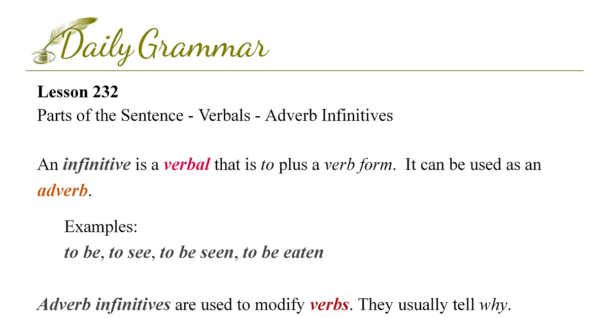 Parts of the Sentence - Verbals - Adverb Infinitives
