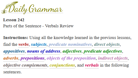 Parts of the Sentence - Verbals Review