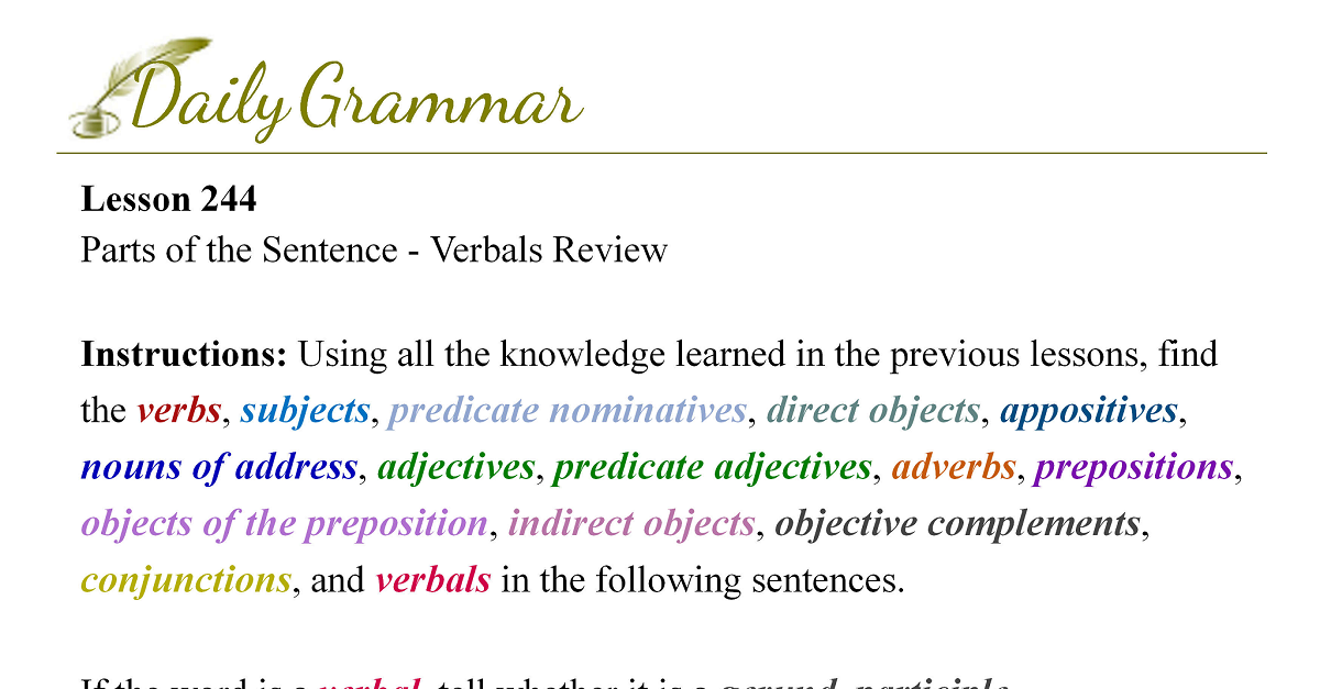 Parts of the Sentence - Verbals Review