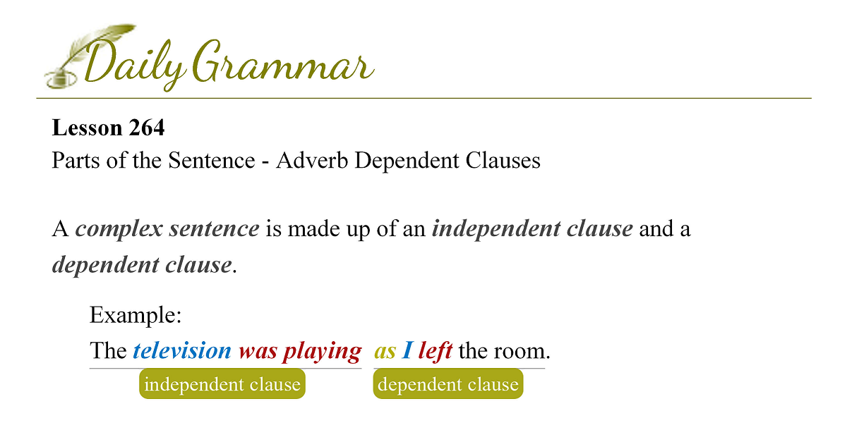 There are three kinds of dependent clauses: adjective clauseThe adjective clause is a dependent clause that is used to modify a noun or a pronoun. It will begin with a relative pronoun (who, whose, whom, which, and that) or a subordinate conjunction (when and where). Those are the only words that can be used to introduce an adjective clause.
