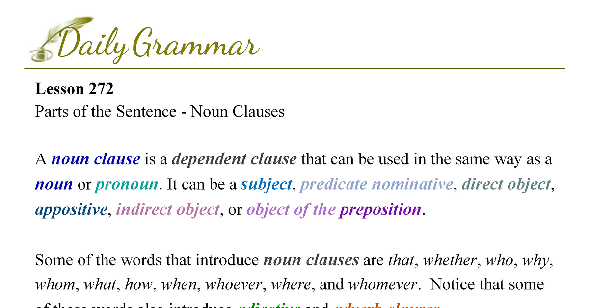 Parts of the Sentence - Noun Clauses