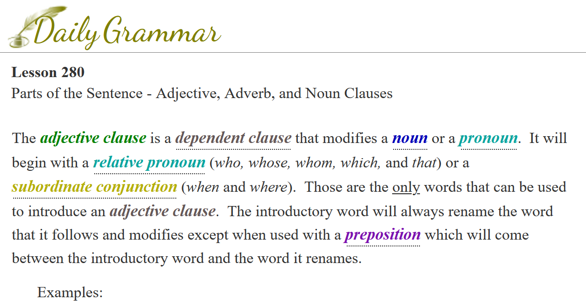 Parts of the Sentence - Adjective, Adverb, and Noun Clauses