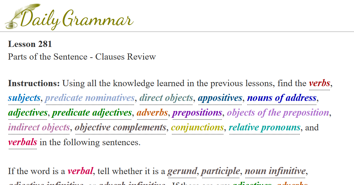 Instructions: Using all the knowledge learned in the previous lessons, find the verbsVerbs show action or state of being. Most verbs are action words, but a few verbs indicate state of being or existence.
