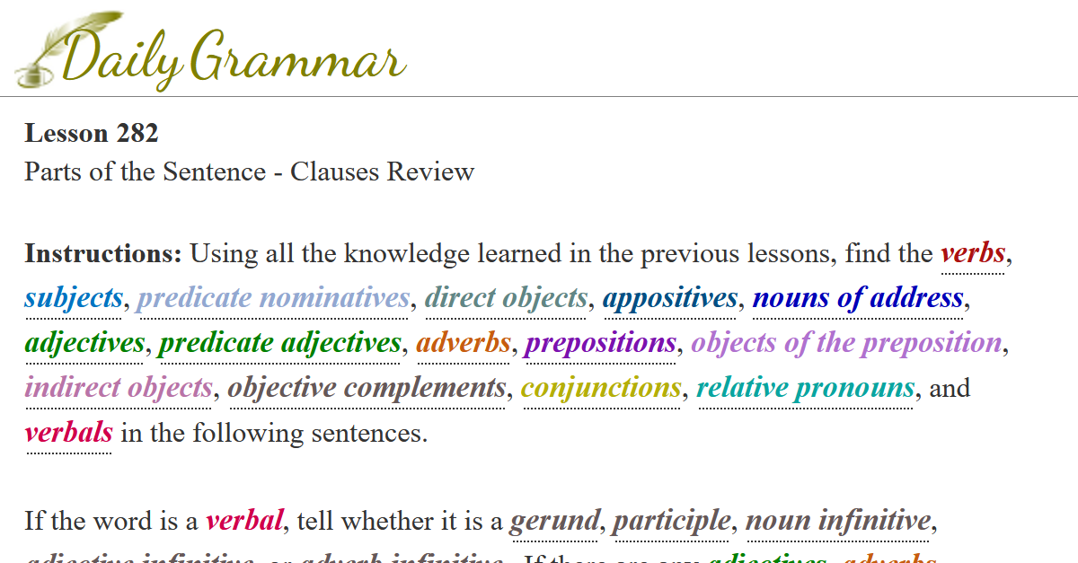 subjectsThe subject tells who or what about the verb. Source: Lesson 95,
