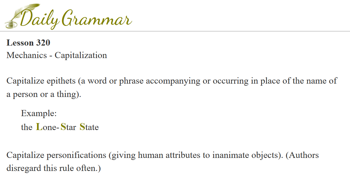 Capitalize personifications (giving human attributes to inanimate objects). (Authors disregard this rule often.)