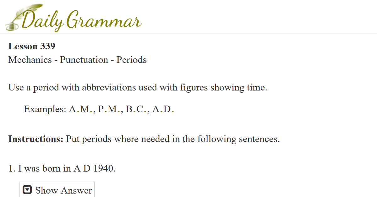 Note: When a period is used for an abbreviation or some other reason at the end of the sentence, you do not need a second one to end the sentence. The one period does double duty.