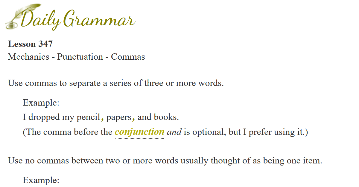 (The comma before the conjunctionA conjunction is a word that joins other words, phrases (groups of words), or clauses (groups of words with a subjects and verb). Source: Lesson 77 and is optional, but I prefer using it.)