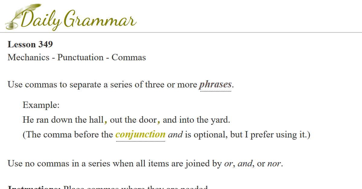 Instructions: Place commas where they are needed.