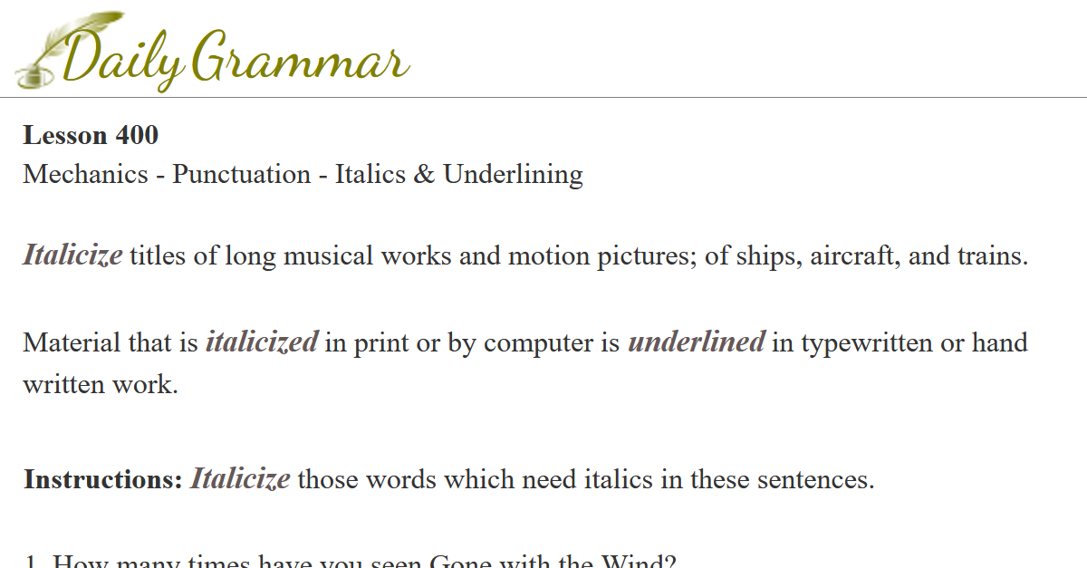 Mechanics - Punctuation - Italics & Underlining