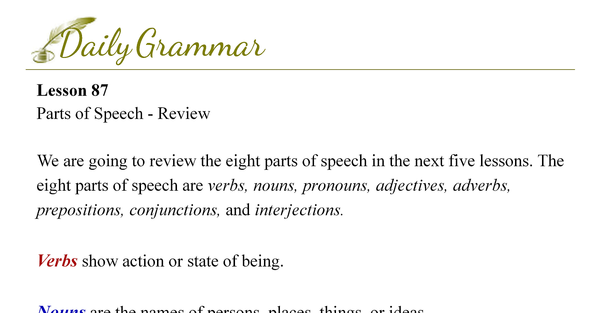 Parts of Speech - Review