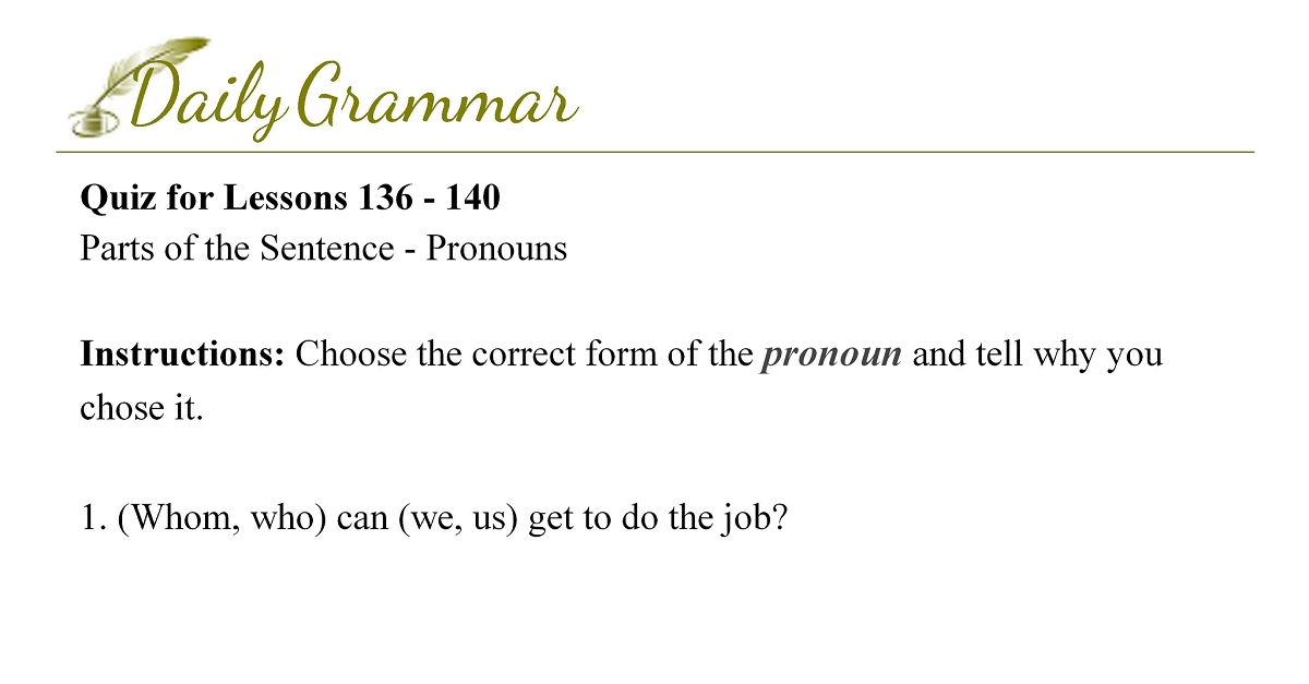 Instructions: Choose the correct form of the pronoun and tell why you chose it.