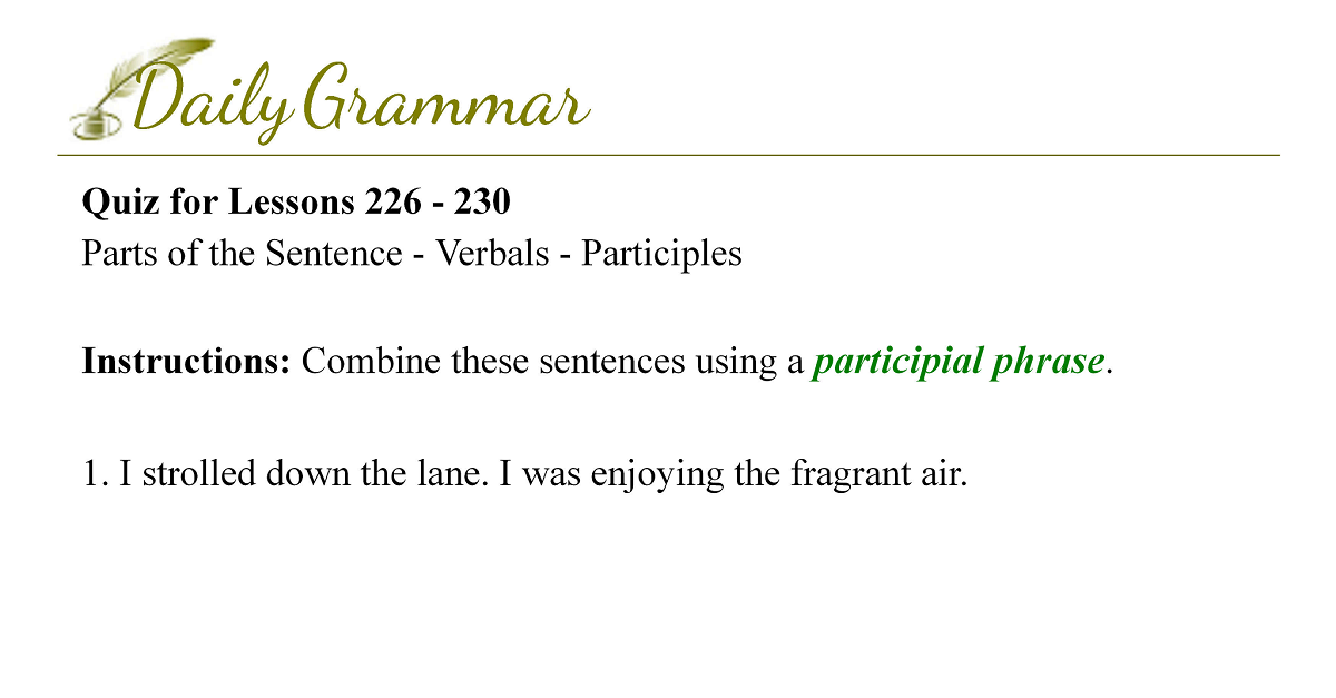 1. I strolled down the lane. I was enjoying the fragrant air.