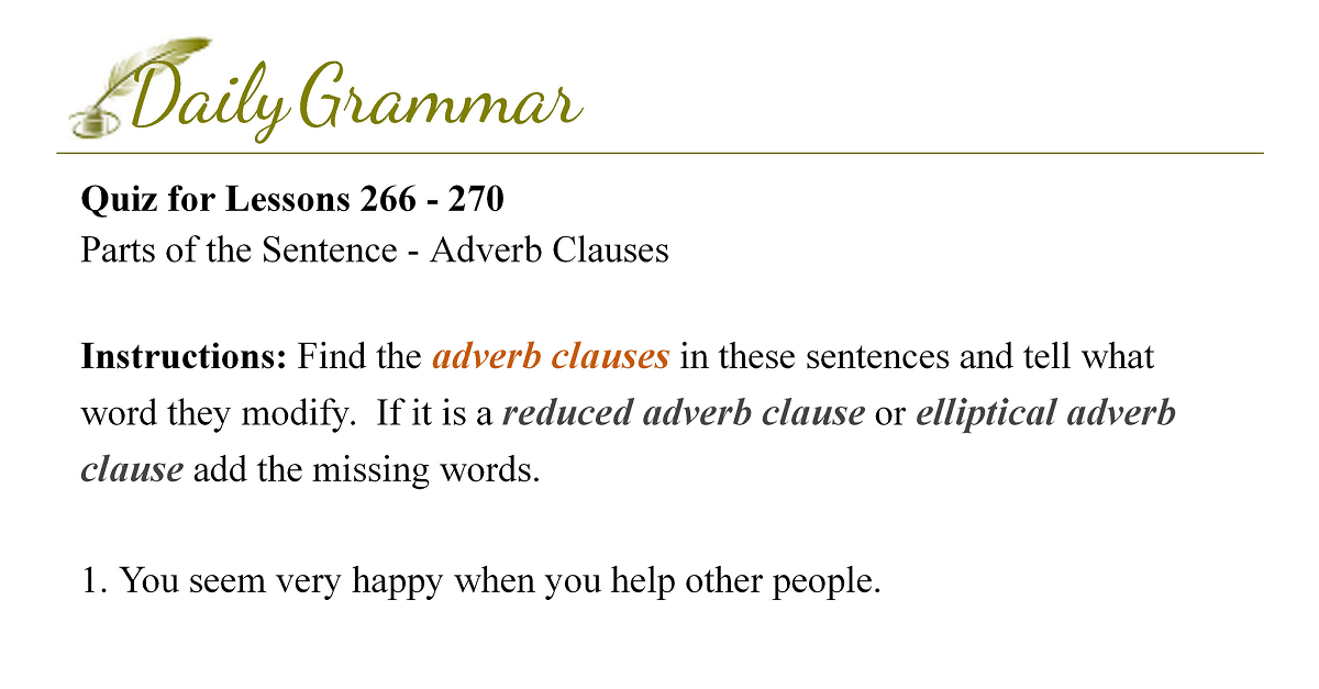 Instructions: Find the adverb clauses in these sentences and tell what word they modify. If it is a reduced adverb clause or elliptical adverb clause add the missing words.