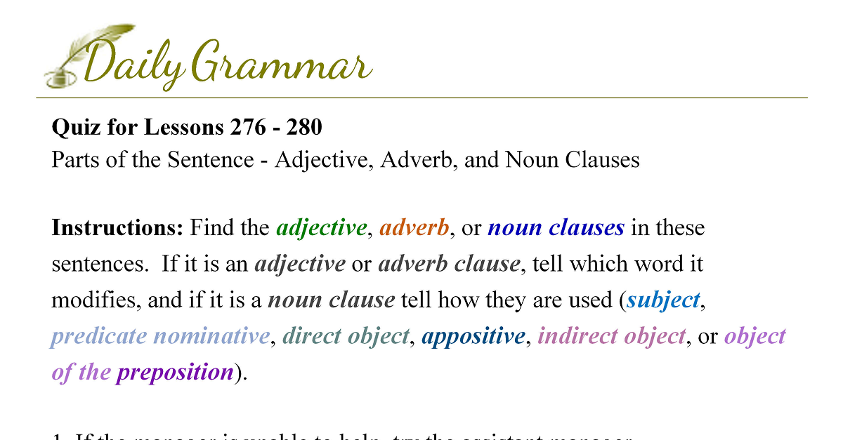 Parts of the Sentence - Adjective, Adverb, and Noun Clauses