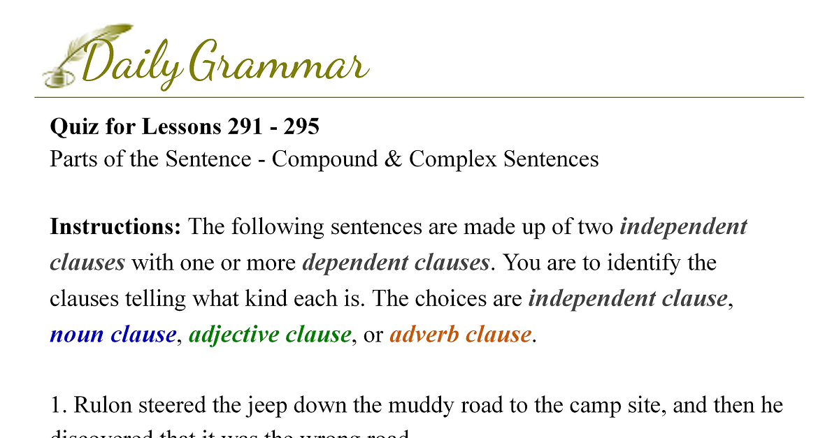 Instructions: The following sentences are made up of two independent clauses with one or more dependent clauses. You are to identify the clauses telling what kind each is. The choices are independent clause, noun clause, adjective clause, or adverb clause.