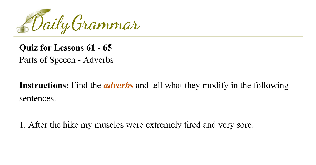 Instructions: Find the adverbs and tell what they modify in the following sentences.